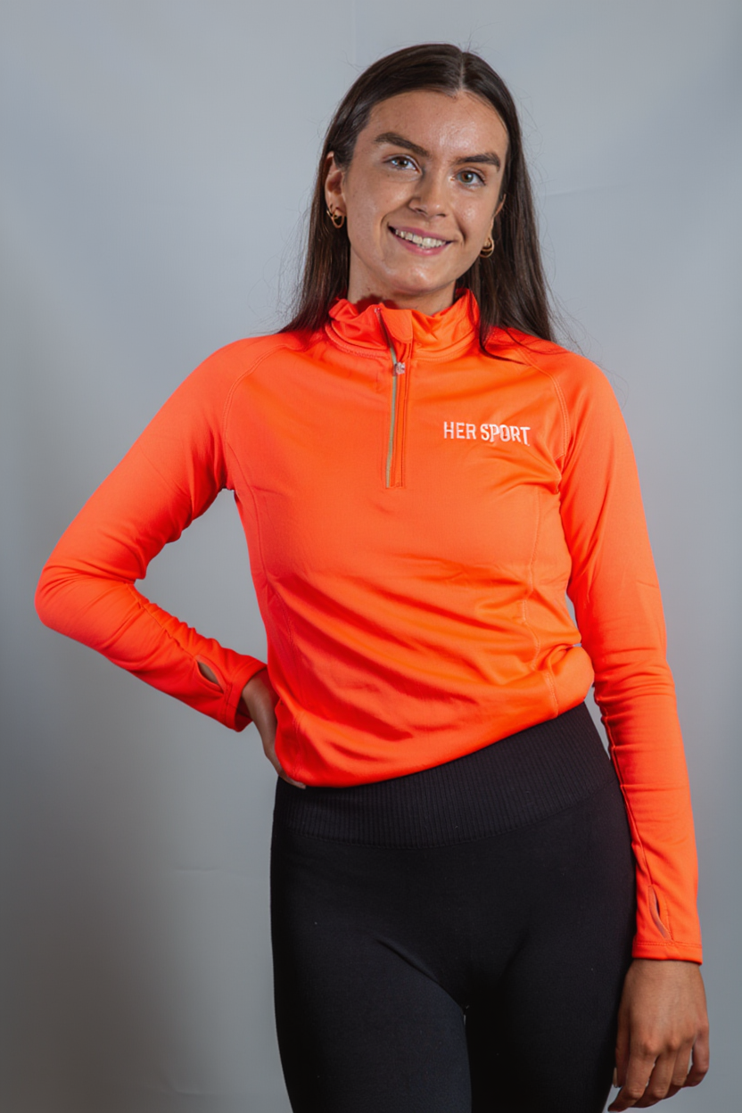 Pink Quarter-Zip available in sizes UK 8 – 16. Black, Orange and Blue Quarter-Zips are available in sizes UK 8 – 18